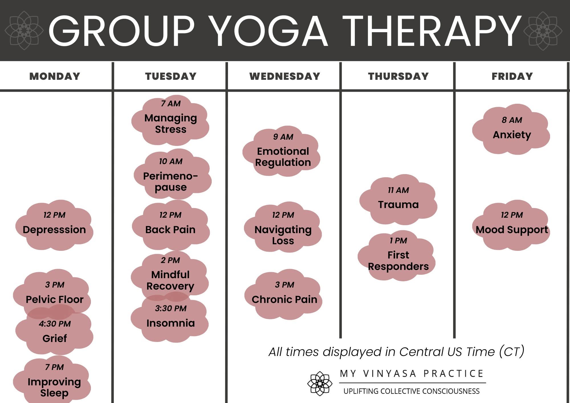 I wanted to share something that might feel meaningful for those of you who’d like to experience group yoga therapy in real time. I’m currently facilitating two free weekly Group Yoga Therapy sessions through the My Vinyasa Practice Student Yoga Therapy Clinic, and thought some of you might want to join and experience how yoga therapy unfolds in practice.